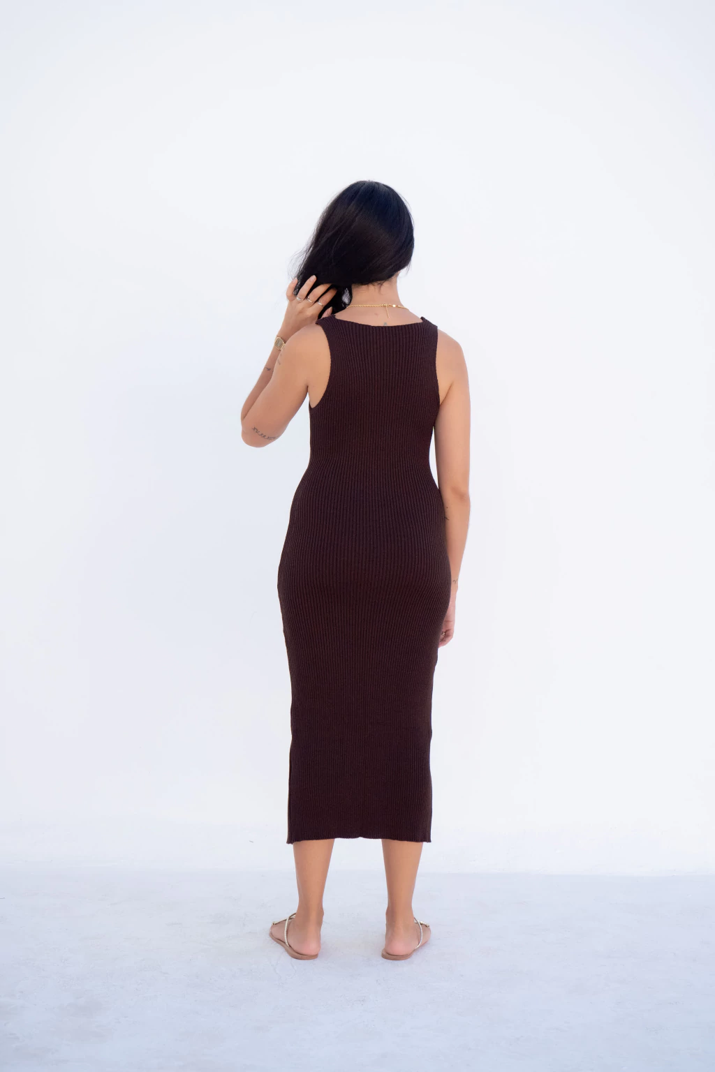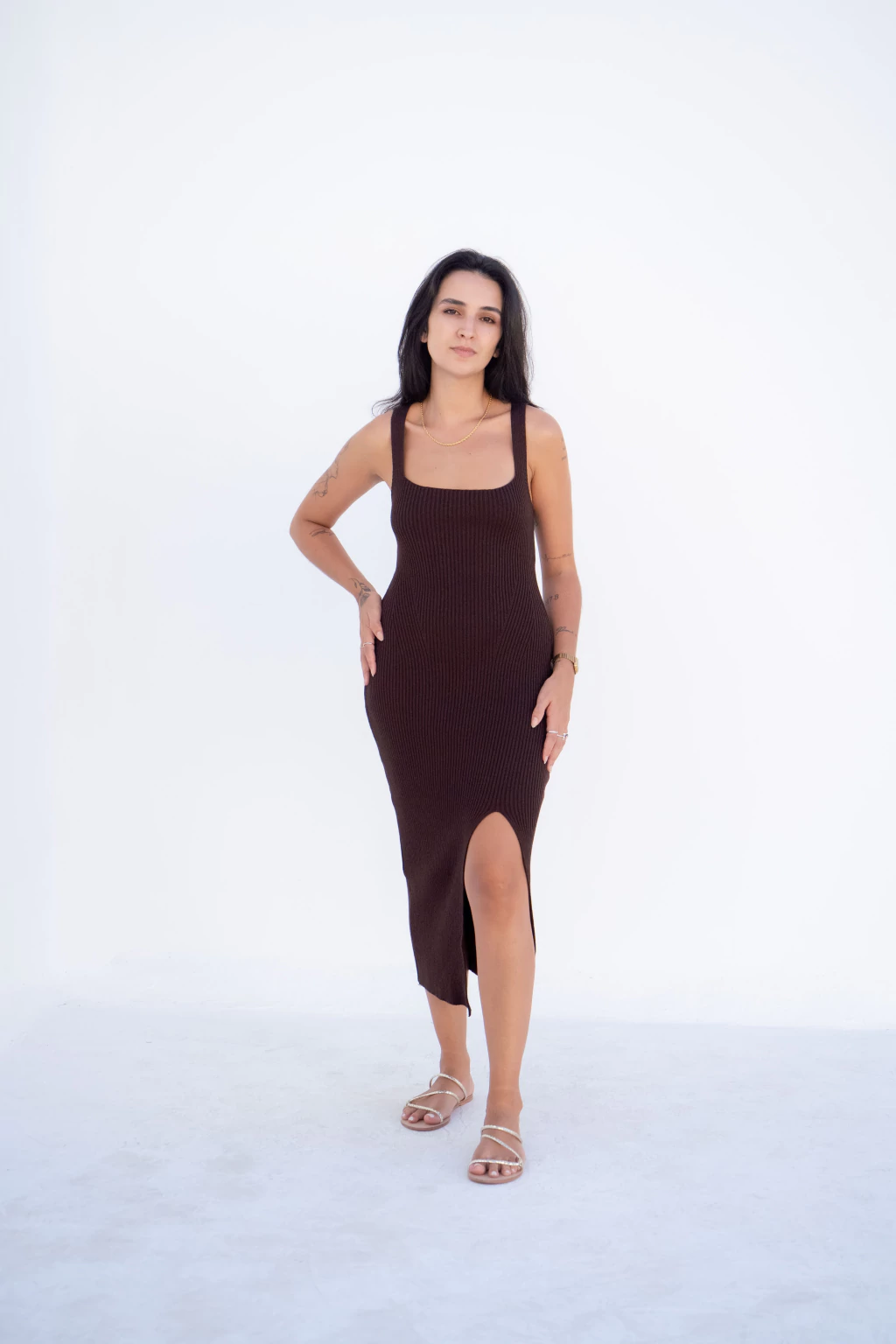 Ideal para os dias com a temperatura amena, o Vestido de tricô decote reto é perfeito para um mood confortável mas com um toque sofisticado. Combine com acessórios minimalistas para um visual confy e easy chic.